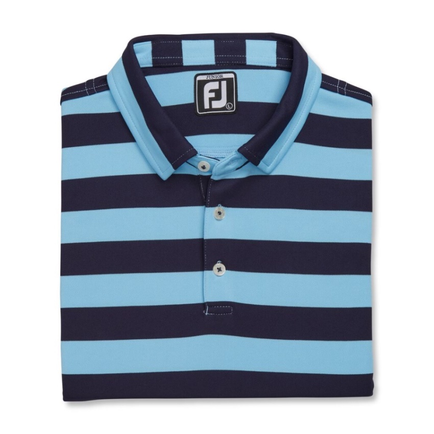ラグビー ストライプ ピケ ジュニア ライトブルーネイビー フットジョイ