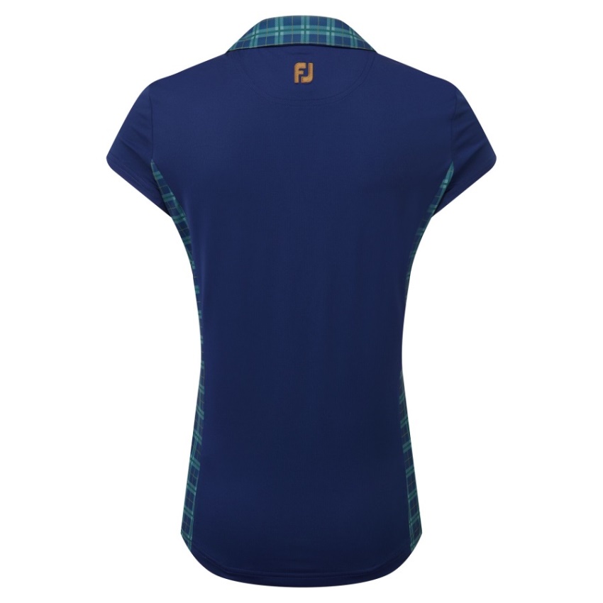 オープン キャップ スリーブ タータン パネル 女性 オープン ブルー フットジョイ