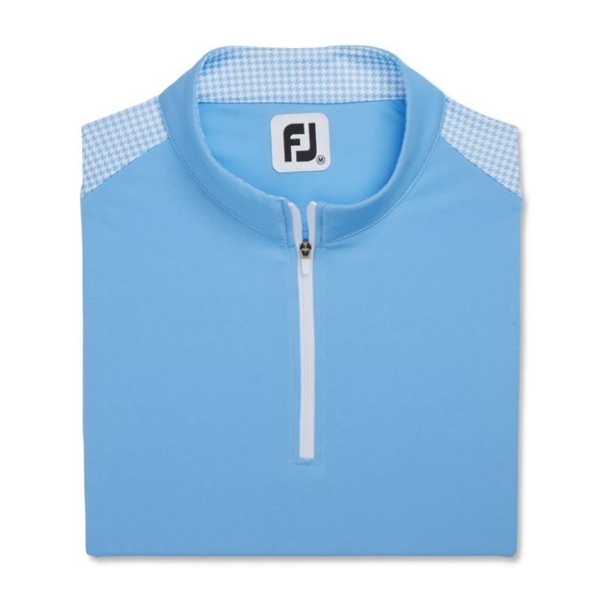 ブルー 1/4 ジップ 千鳥格子トリム レディース フットジョイ