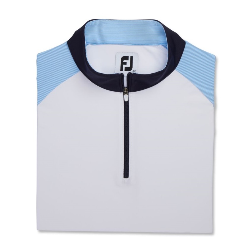 マイクロストライプサンプロテクションシャツレディースホワイトブルーネイビーフットジョイ