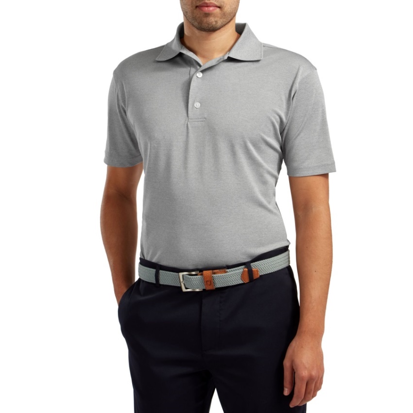 ストレッチピケ 無地 リブ編み 衿 フットジョイ 杢グレー
