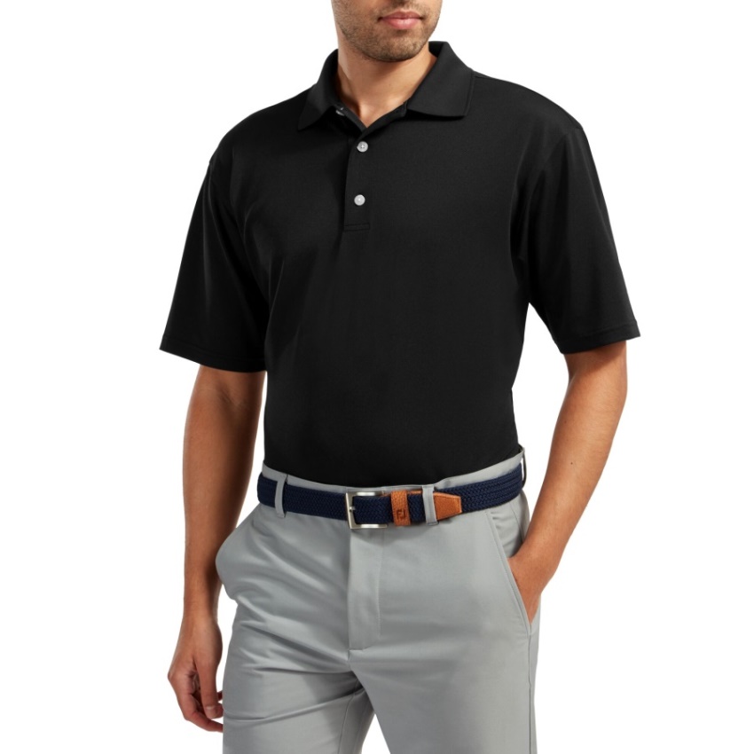 ブラック ストレッチ ピケ ソリッド ニット カラー フットジョイ