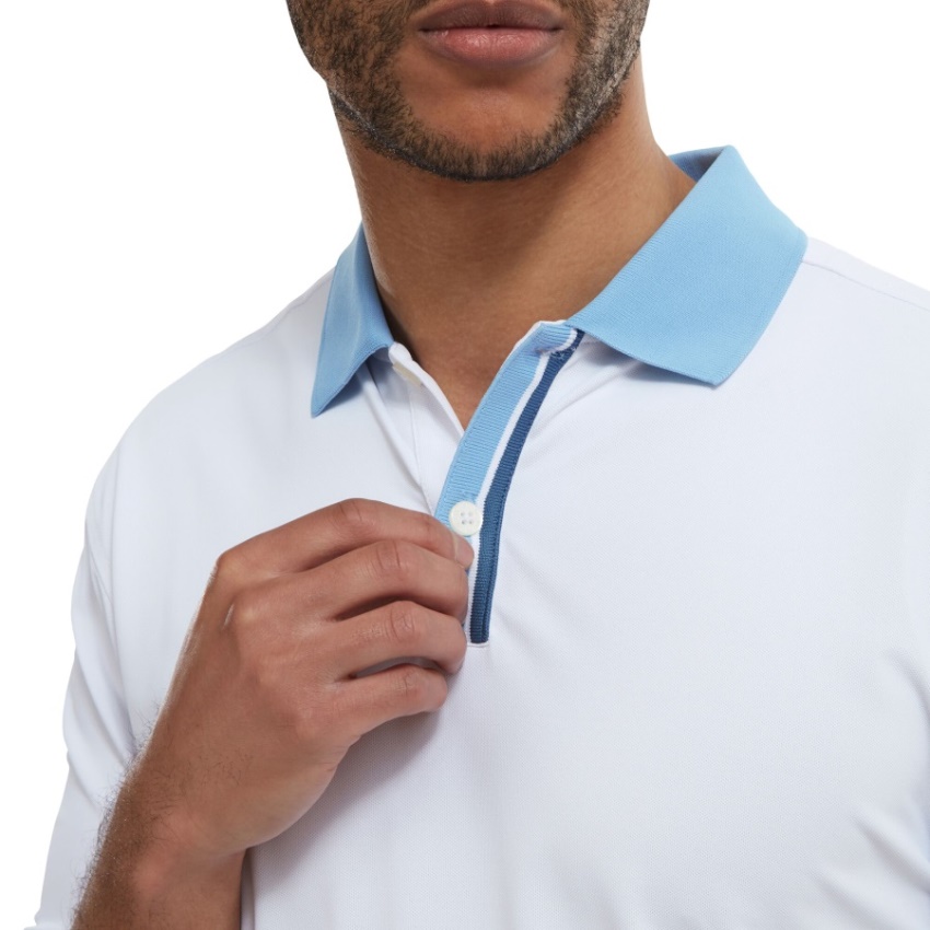 無地 ストライプの前立て ピケ ホワイトブルー フットジョイ