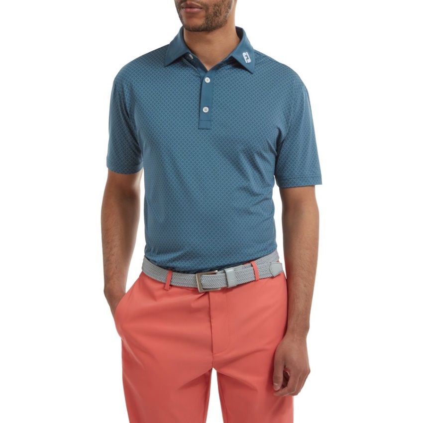 Footjoy ブルーホワイトダイヤモンドドットプリントライル