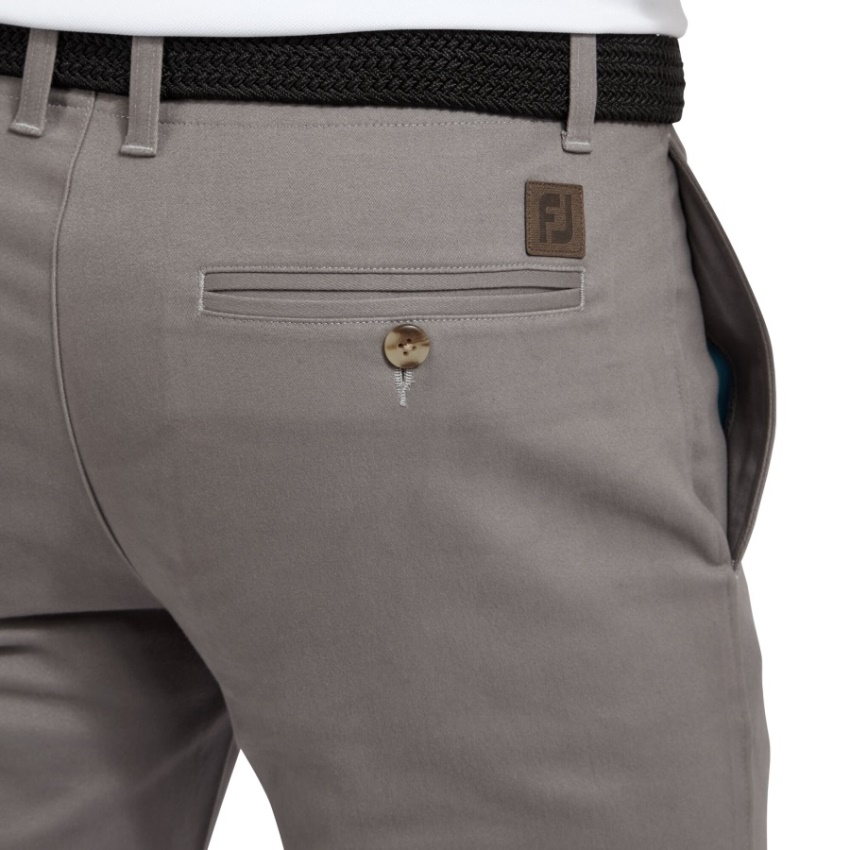 デボス加工された Fj ブラウン ホーンで仕上げられたコイン/ボール マーカー ポケットを含む 5 つのポケット構造ボタンとレザーバッジ 綿62% | 35% ポリエステル |スパンデックス 3%