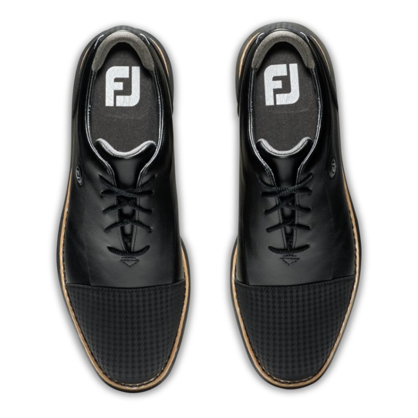 ウォータープルーフ Fj は、このゴルフ シューズが通常の使用で 1 年間防水であることを保証します (米国保証)。