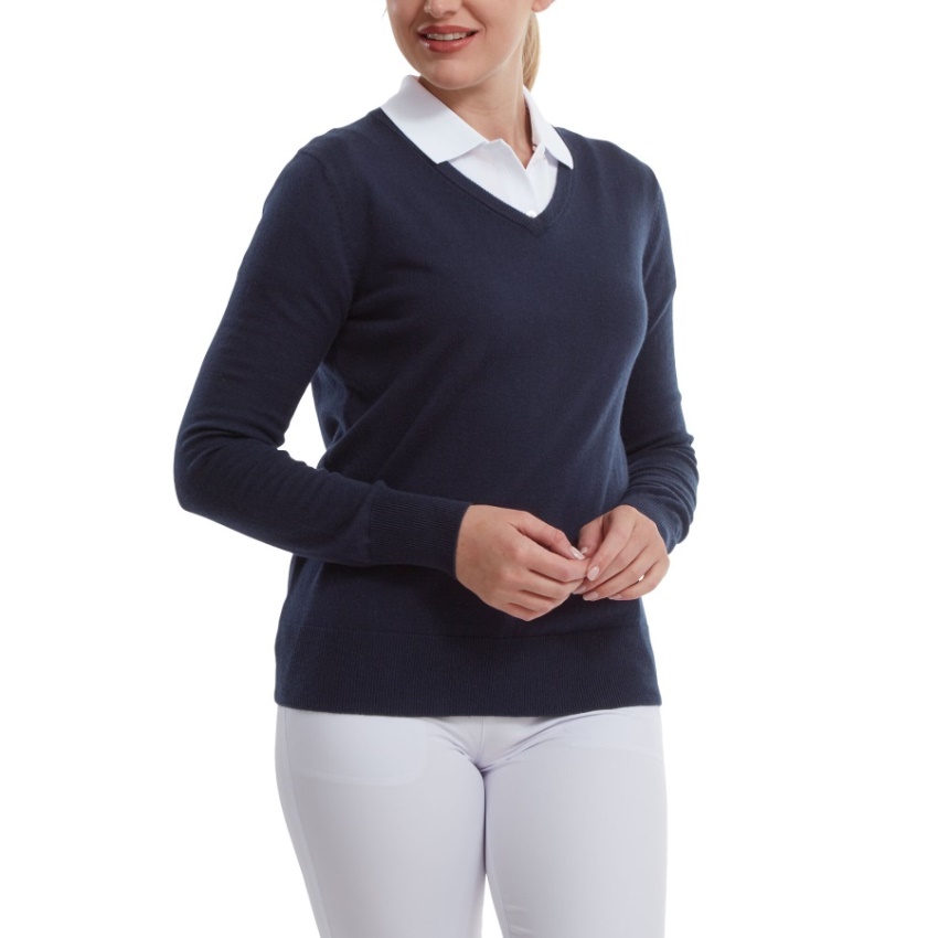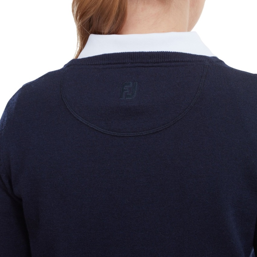 ネイビー ウール混 Vネック プルオーバー フットジョイ