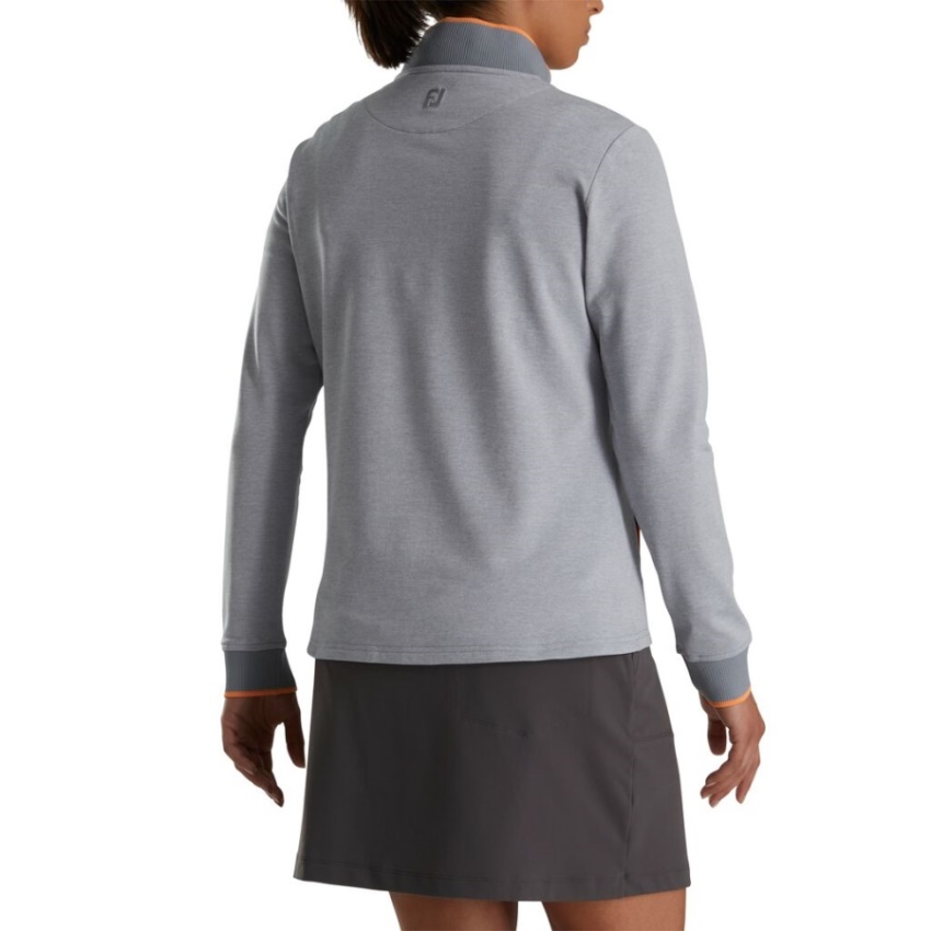 フットジョイ グレーヘザー ハーフジップ 裏毛 ピケ ミッドレイヤー レディース