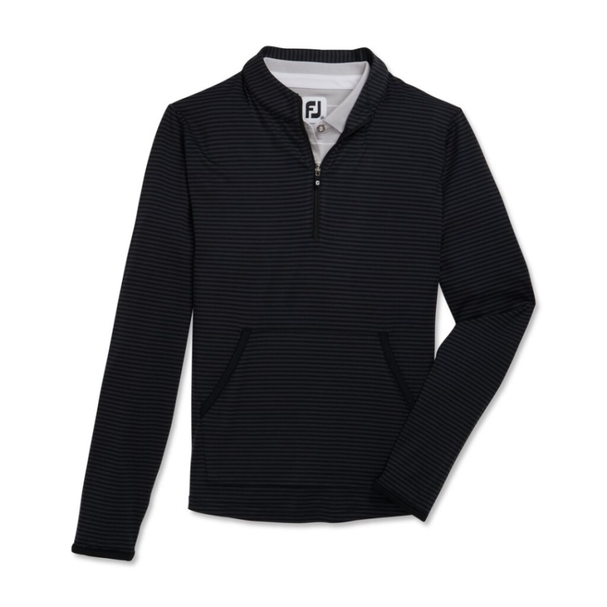 フットジョイ ブラック ハーフジップ トーナルストライプ ミッドレイヤー レディース