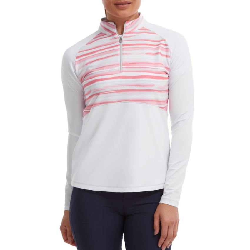 フットジョイ ホワイト ハーフジップ ジャージー ウォーターカラー ミッドレイヤー