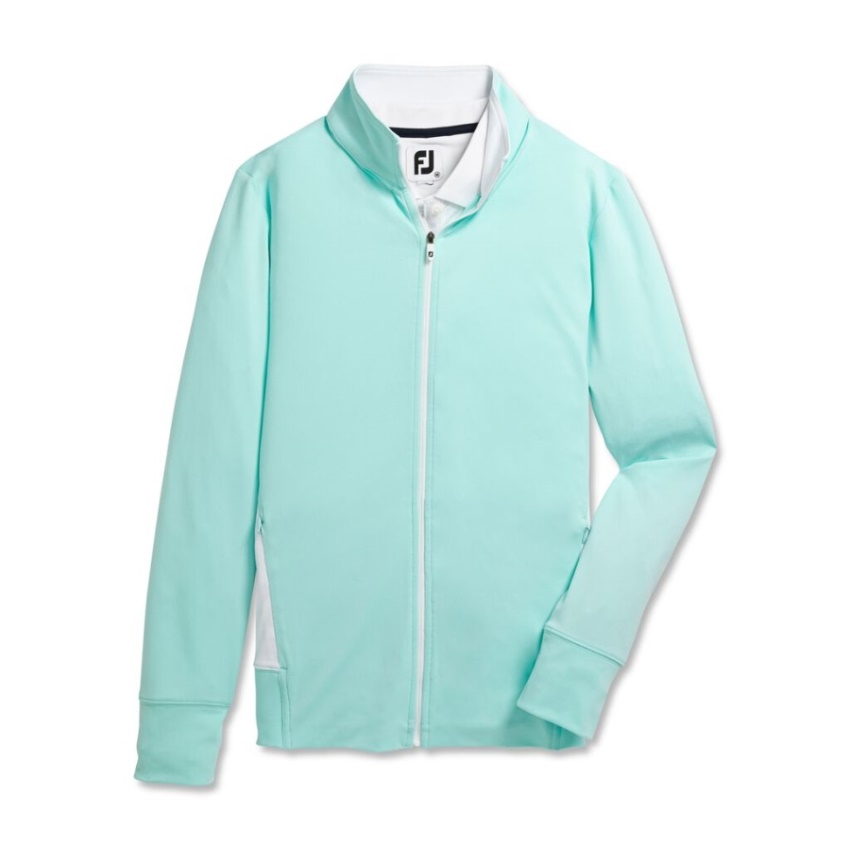 フルジップ パネル ポケット ミッドレイヤーの女性 アクアマリン ホワイト フットジョイ