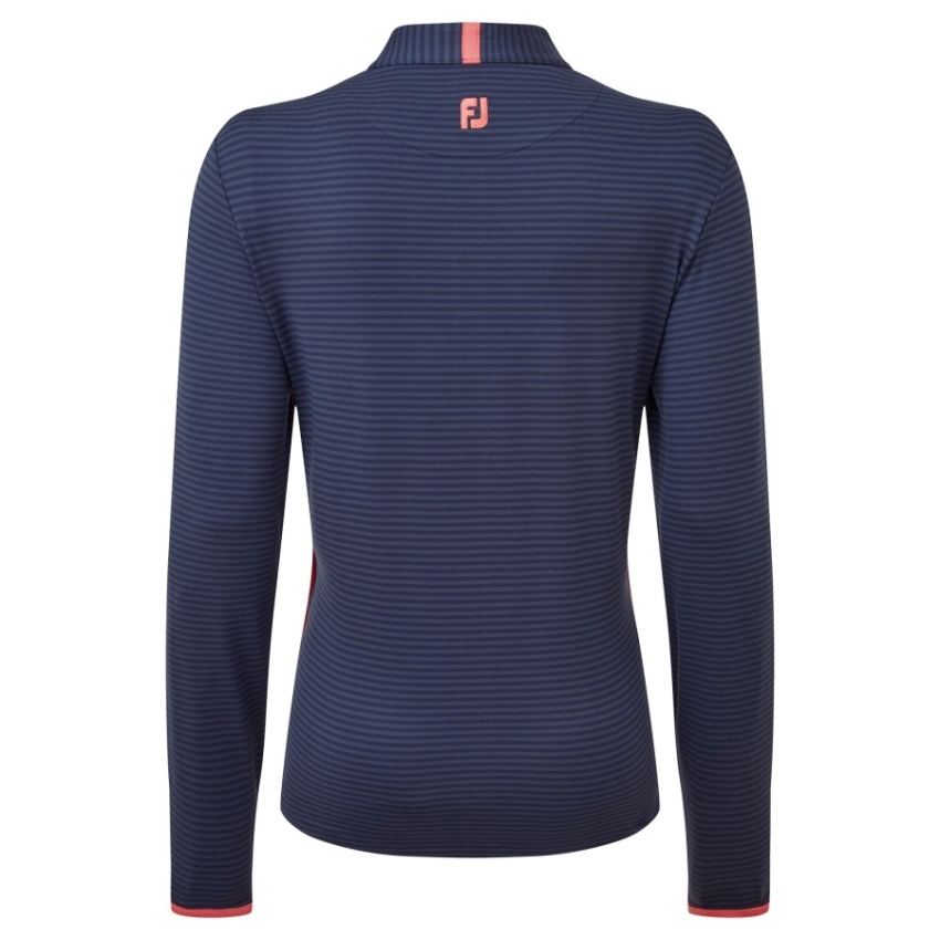 フルジップ 軽量 同系色ストライプ ミッドレイヤー フットジョイ ネイビーブライトコーラル