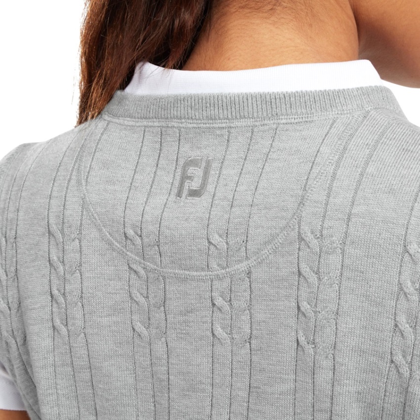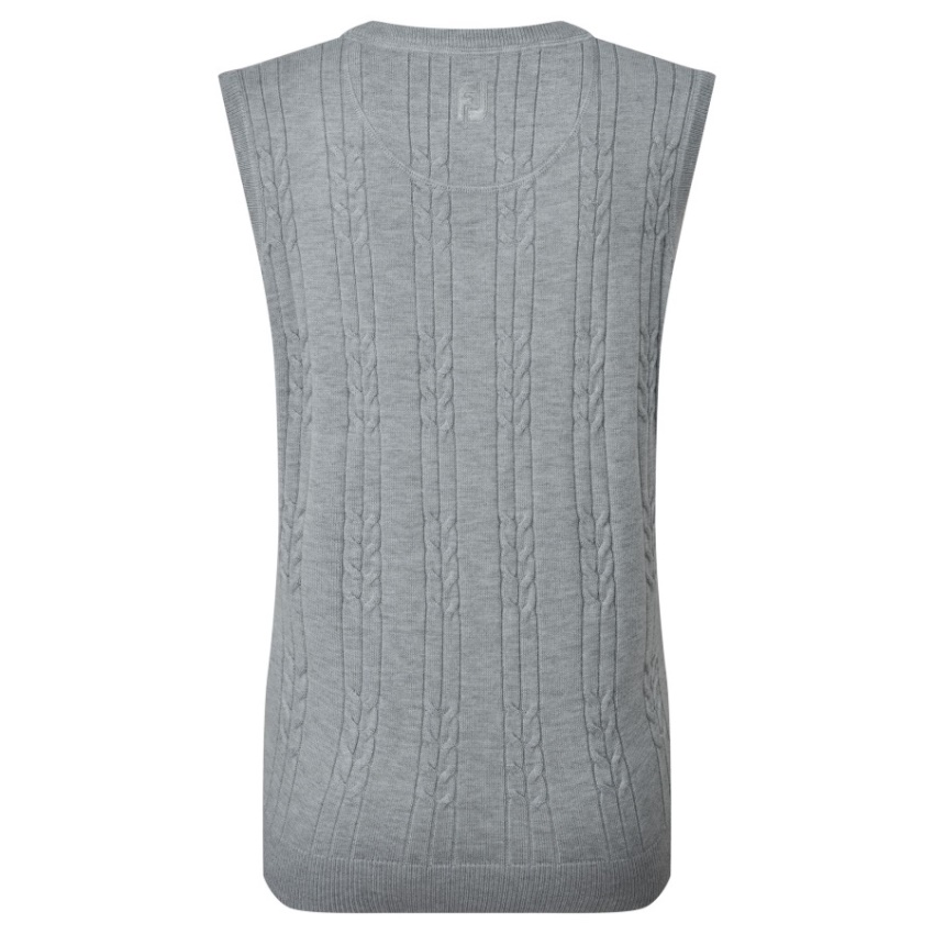 女性用ウール混ケーブル ニット V ネック ベスト グレー フットジョイ