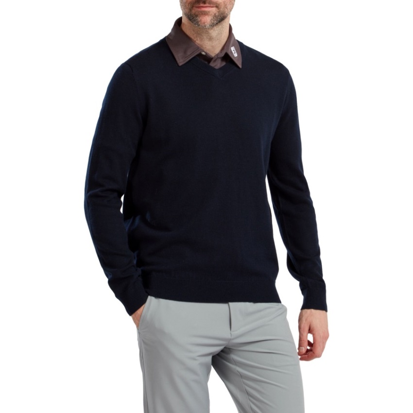 ネイビー フットジョイ ウール混 Vネック プルオーバー