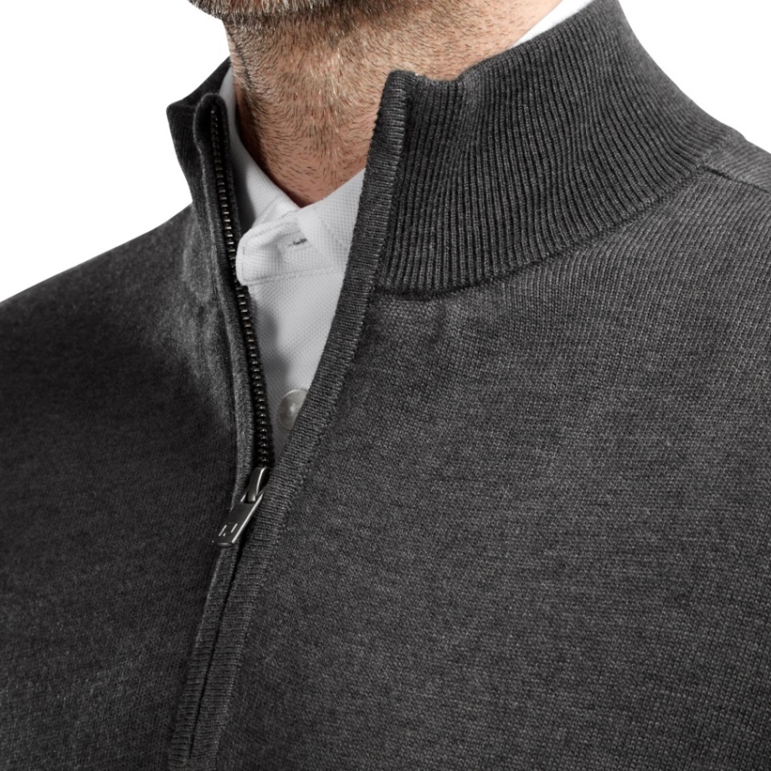 ヘザー チャコール フットジョイ ウール ブレンド 1-2 ジップ ライニング プルオーバー