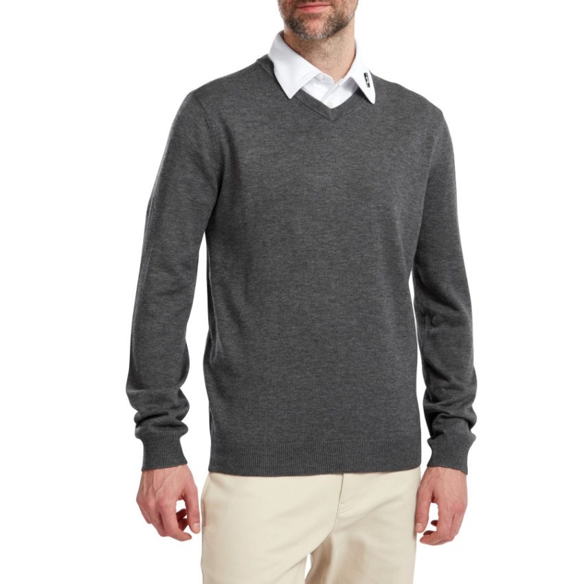 Footjoy ヘザー チャコール ウール ブレンド V ネック プルオーバー