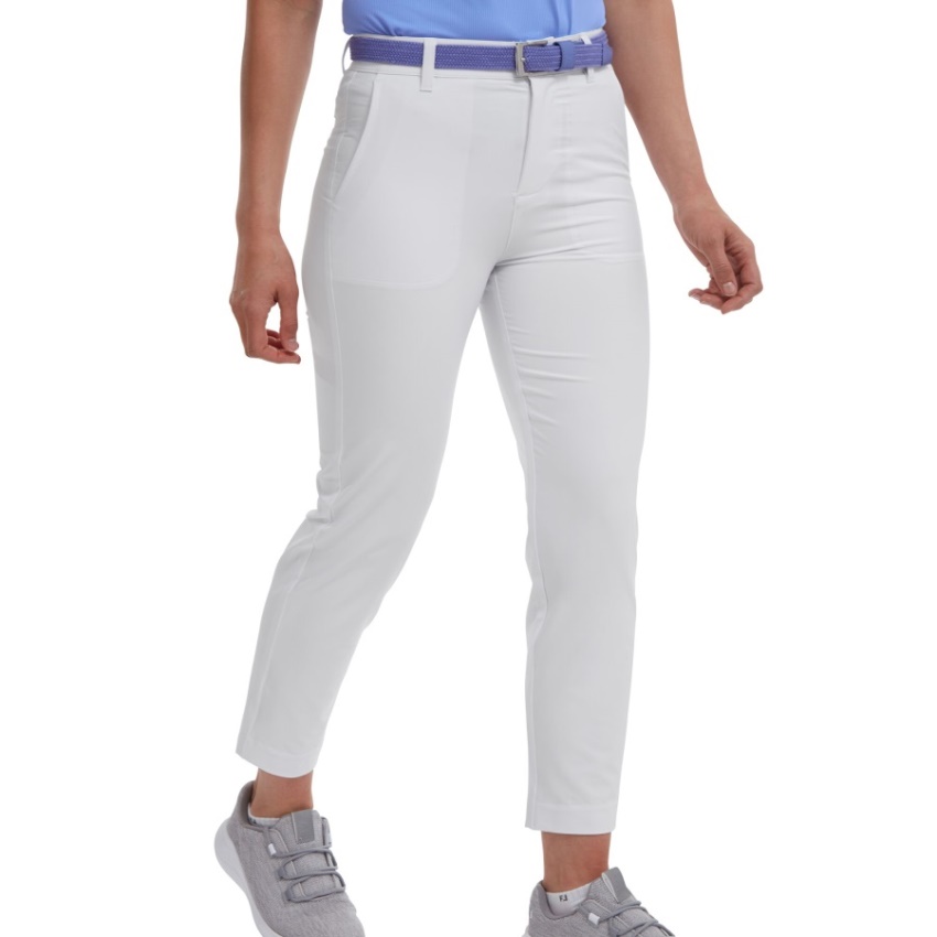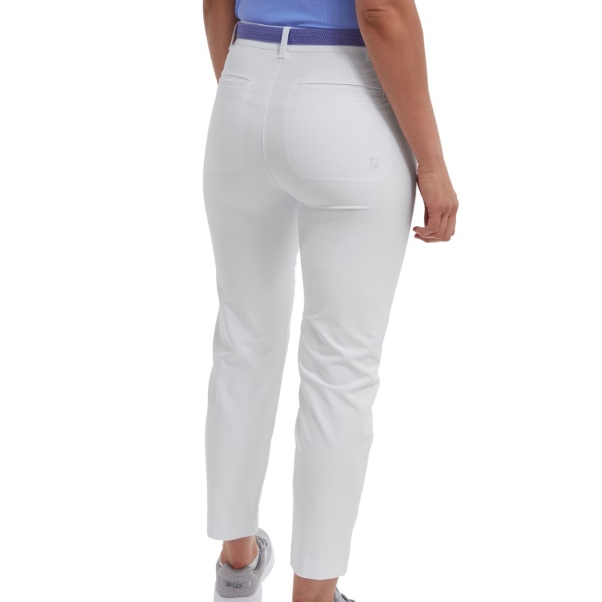 白いフットジョイストレッチクロップドパンツ.