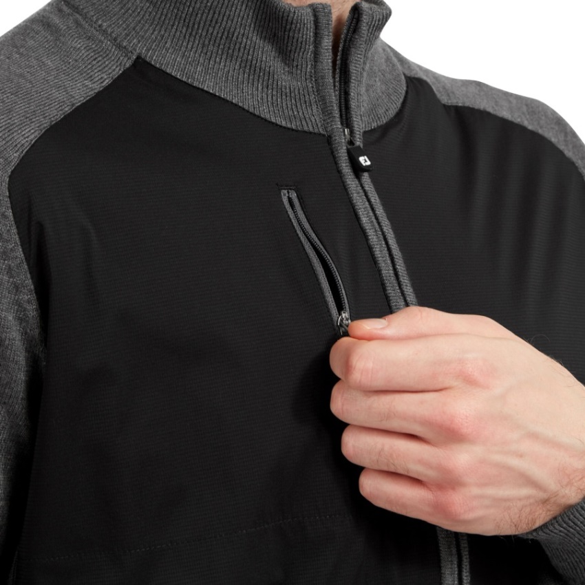 ウールブレンド テック フルジップ セーター ブラック チャコール フットジョイ