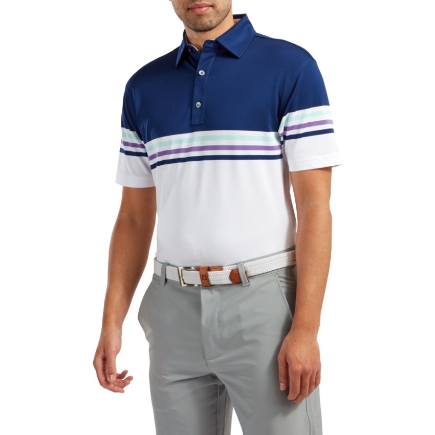 ストレッチピケ カラーブロック フットジョイ ブルーホワイト
