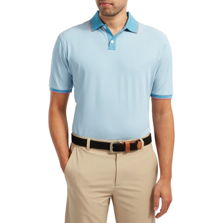 fj Prodry ストレッチ ピケ生地全体にツートーンのミニストライプ レイアウト無地のリブ ニットの襟と袖口 襟と袖口のコントラスト ティッピングからカラー ポップ
