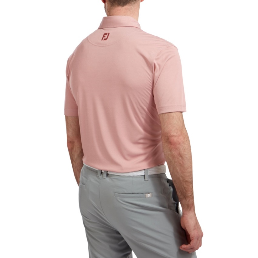 全体にバーズアイ生地、前立てと襟の内側にストライプのコントラストのディテール、襟のボタンダウン、同系色の後ろヨークに Fj ロゴの水分ウィッキング テクノロジーが体から湿気を逃がします
