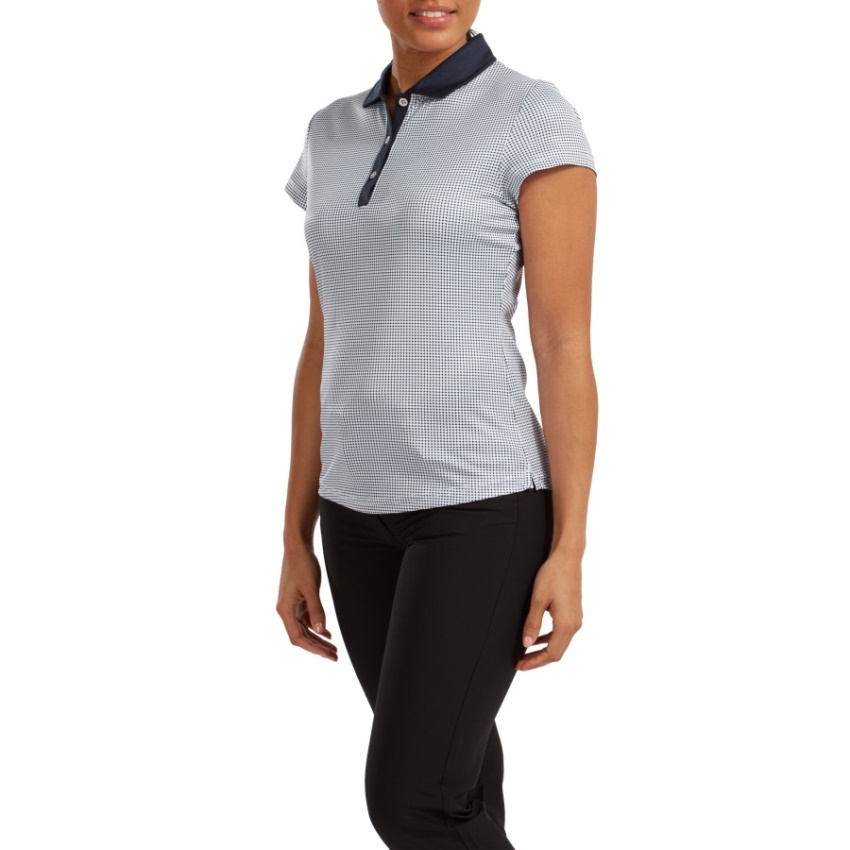 Footjoy ネイビー レディース ライル ノースリーブ シャツ ネック トリム付き
