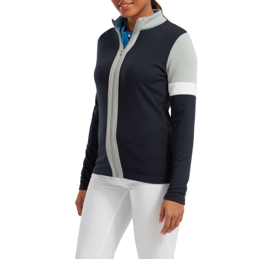 Footjoy レディース フルジップ ブロック ミッドレイヤー ネイビー