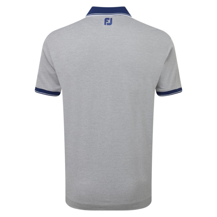 Footjoy トリム付きシルバー ヘザー オープン ブルー ポロシャツ