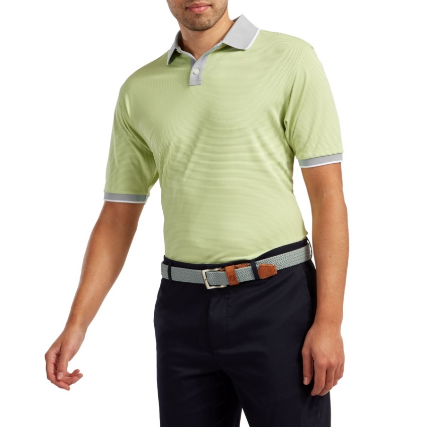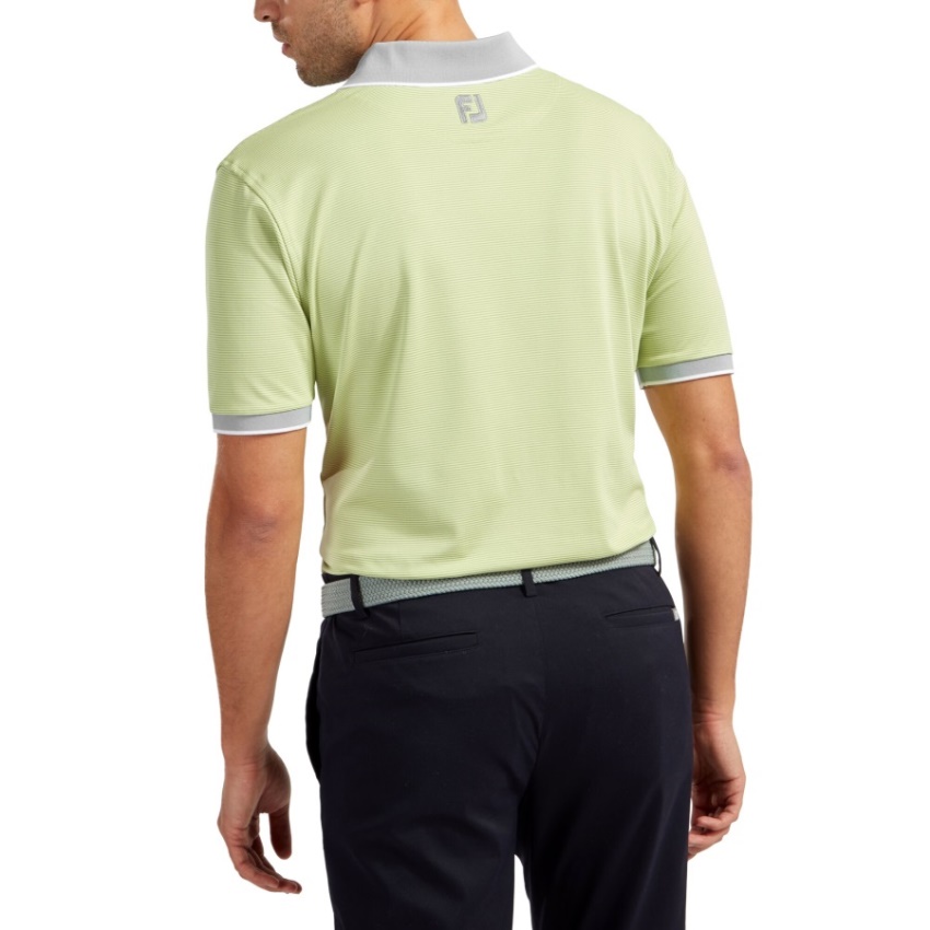 fj Prodry ストレッチ ピケ生地全体にツートーンのミニストライプ レイアウト無地のリブ ニットの襟と袖口 襟と袖口のコントラスト ティッピングからカラー ポップ