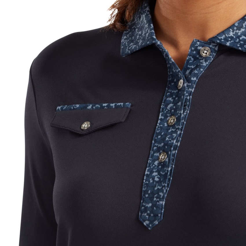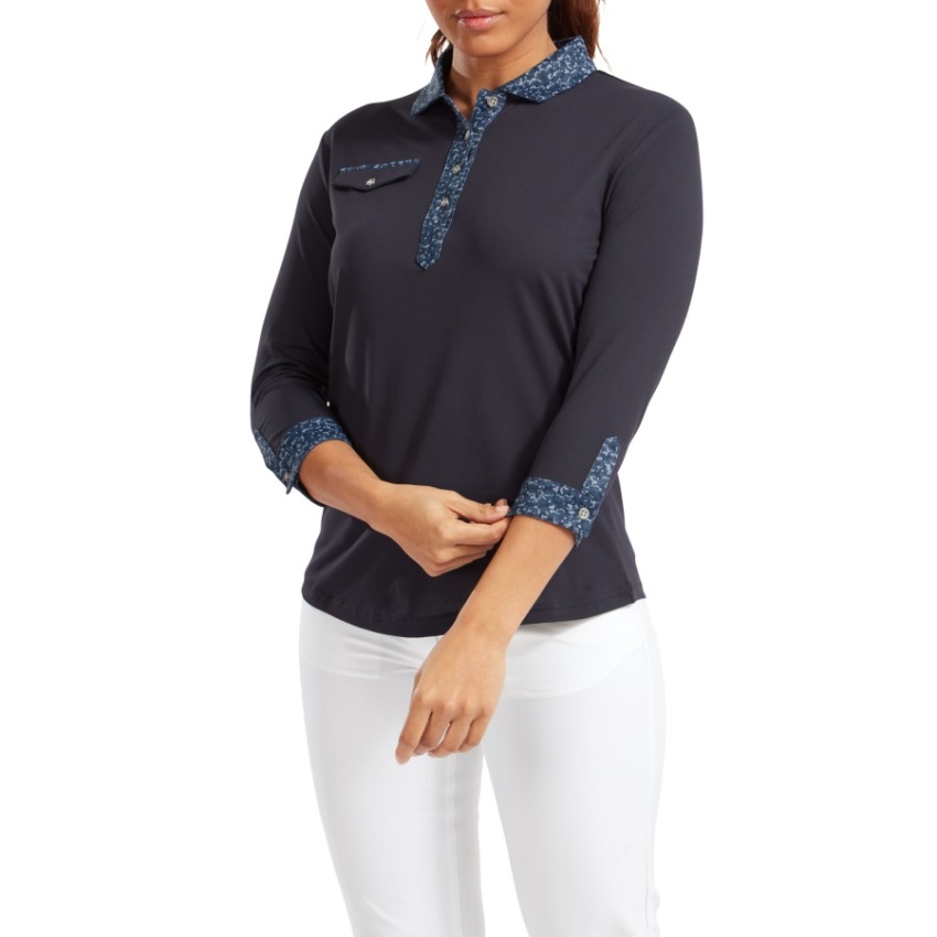 ネイビー フットジョイ レディース 3-4 スリーブ ピケ プリント トリム