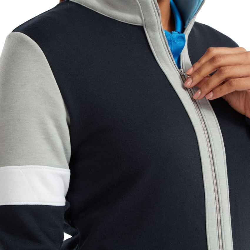 ネイビー レディース フルジップ ブロック ミッドレイヤー フットジョイ