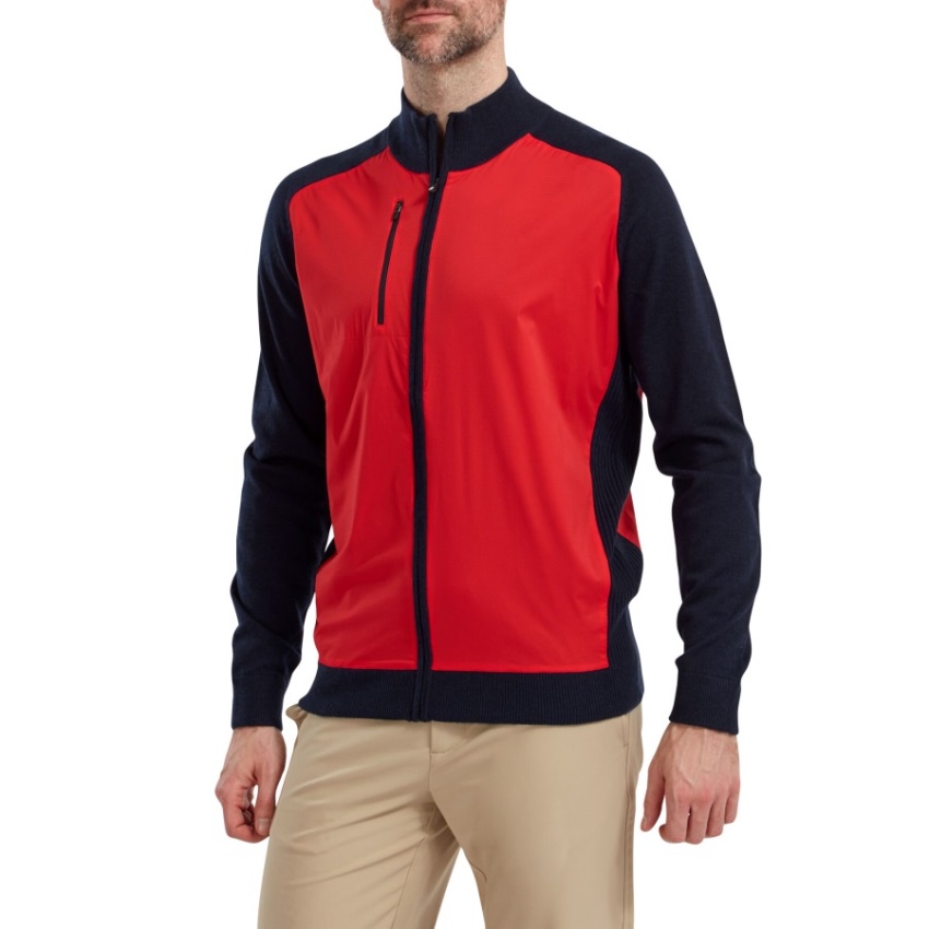フットジョイ ウールブレンド テック フルジップ セーター レッドネイビー