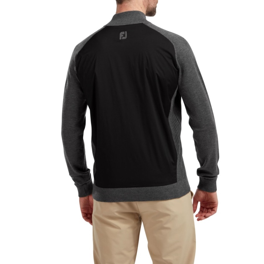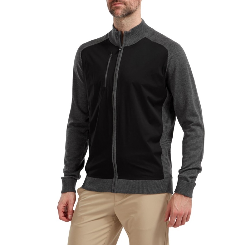 フットジョイ ブラック チャコール ウール ブレンド テック フルジップ セーター