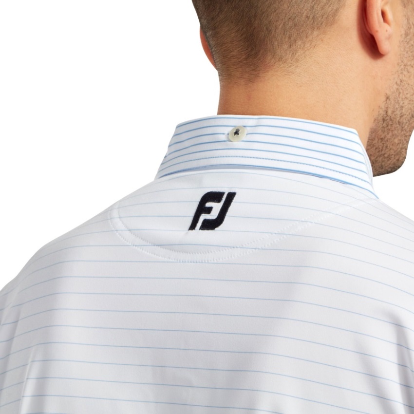 着用者のボディとトリム胸ポケットのコントラスト ストライプ レイアウト右コントラスト バー タック、カラー スタンド パイピングとボタンスレッドコントラストのフロント左襟とリアヨーク Fj ロゴの吸湿発散性テクノロジーが体から湿気を逃がします