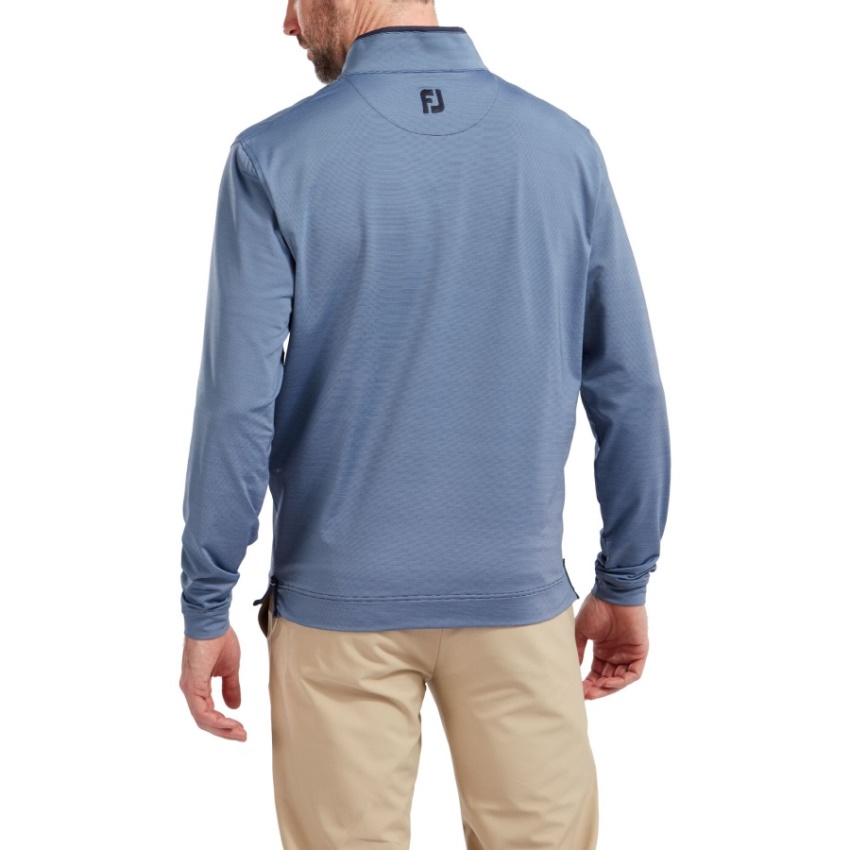 超ソフトなジャージー ニット ストレッチ生地全体にツートーンのマイクロストライプ パターン ツートーンのハーフジップ構造 コントラストカラーとサイド ベントのディテール コーディネートされたカラーとリア ヨークの Fj ロゴの使いやすさしわを最小限に抑えるケア生地