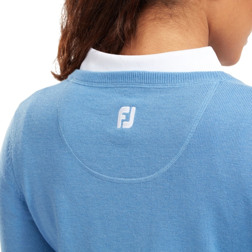 フットジョイ ライトブルー ウール混 Vネック プルオーバー レディース