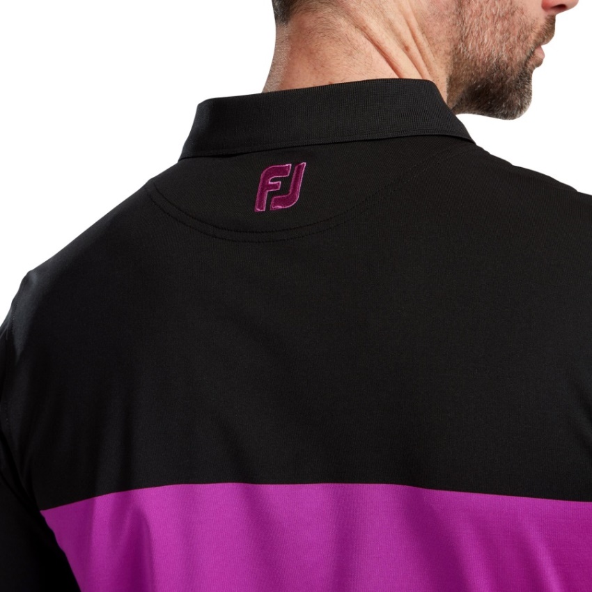エンジニアード カラー ブロック リブ ニットの襟と袖口のカラー コーディネート 背面ヨークの Fj ロゴ 吸湿発散テクノロジーが湿気を吸収