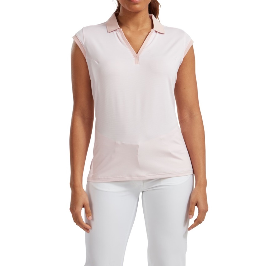 fj Prodry 軽量ストレッチ ライル 全体にマイクロストライプ レイアウト キャップ スリーブとオープン V ネック構造 無地の襟、前立て、袖口 吸湿発散技術により体から湿気を逃がします