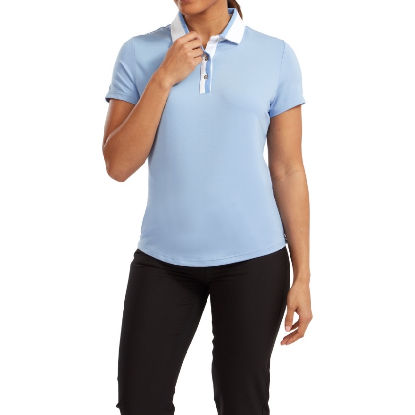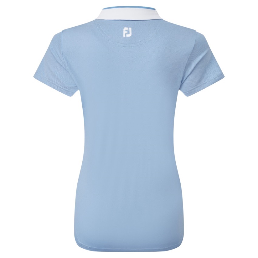 バーズアイ柄全体に伸縮性のある滑らかなジャカード生地 ツートン カラーのコーディネイトされた前立てと襟 装飾的なシルバーの Fj ボタン 吸湿発散性テクノロジーが体から湿気を取り除きます