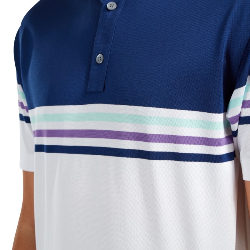 ブルーホワイト フットジョイ ストレッチピケ カラーブロック