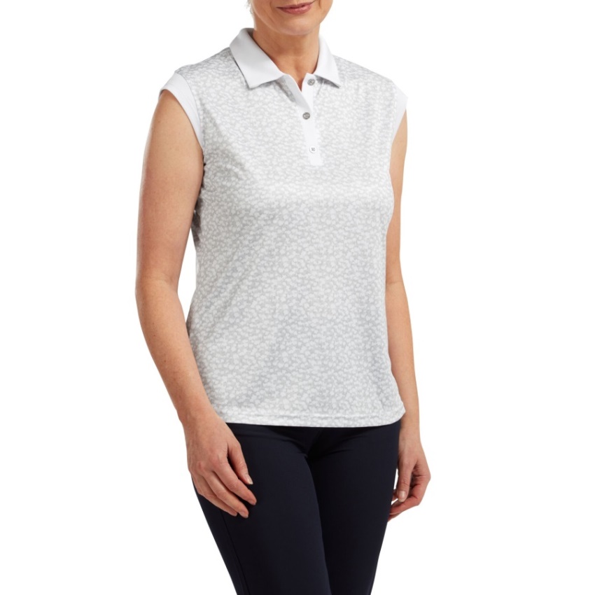 ホワイトレディースキャップスリーブプリントインターロックフットジョイ