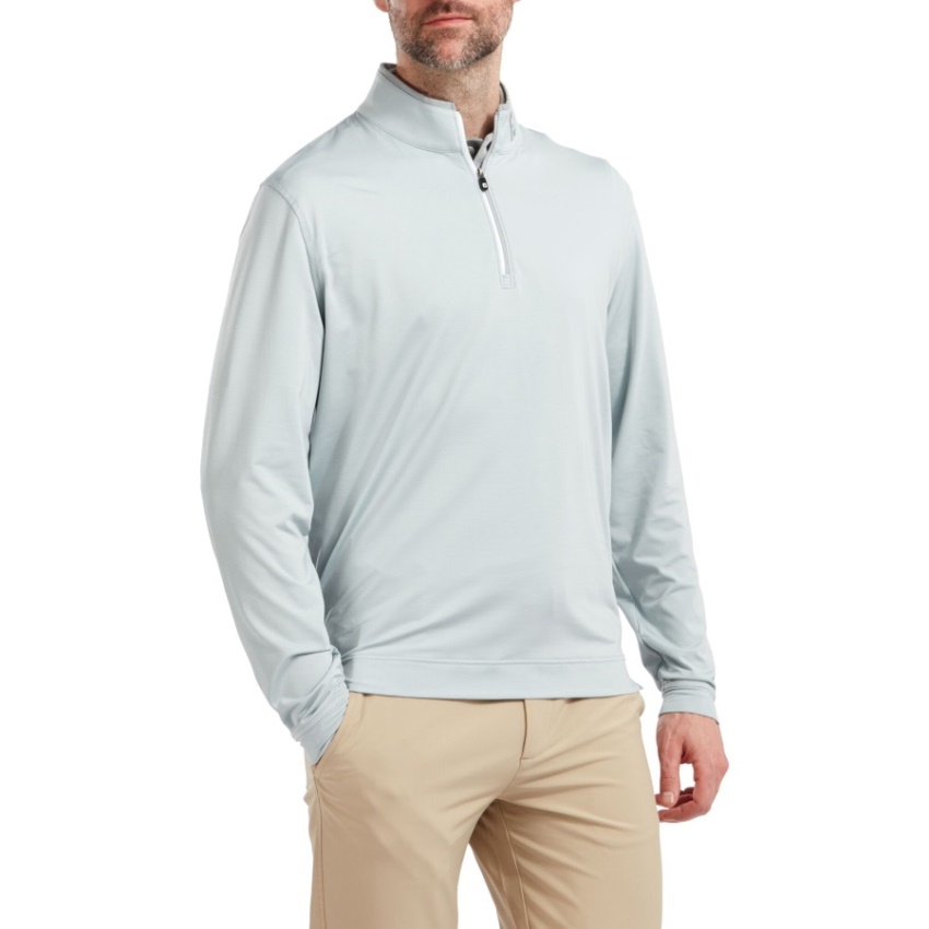 超ソフトなジャージー ニット ストレッチ生地全体にツートーンのマイクロストライプ パターン ツートーンのハーフジップ構造 コントラストカラーとサイド ベントのディテール コーディネートされたカラーとリア ヨークの Fj ロゴの使いやすさしわを最小限に抑えるケア生地
