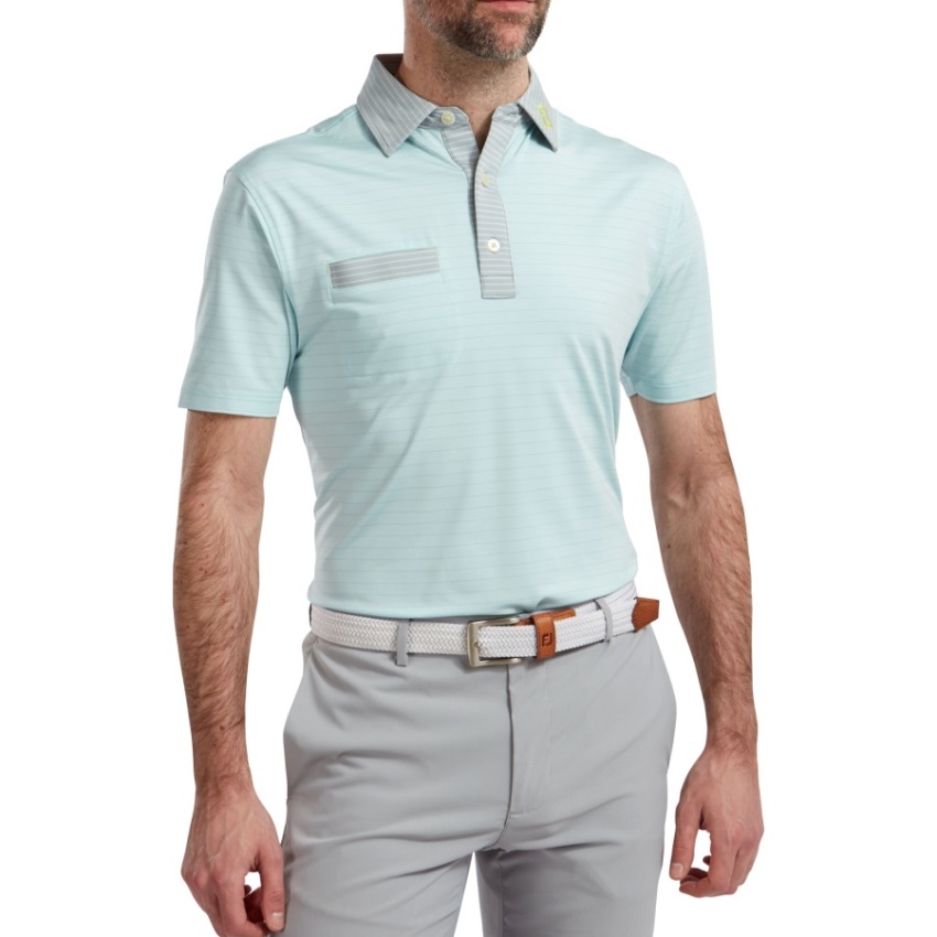 着用者のボディとトリム胸ポケットのコントラスト ストライプ レイアウト右コントラスト バー タック、カラー スタンド パイピングとボタンスレッドコントラストのフロント左襟とリアヨーク Fj ロゴの吸湿発散性テクノロジーが体から湿気を逃がします