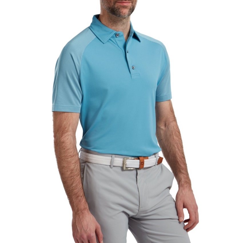 fj プロドリー ピケ ボディ生地 コントラスト ジャカード ニット生地 オーバー ショルダーと袖 アスレチックなラグラン スリーブ構造 カラー コーディネート フロント左襟とリア ヨーク Fj ロゴの吸湿発散技術が引き出す