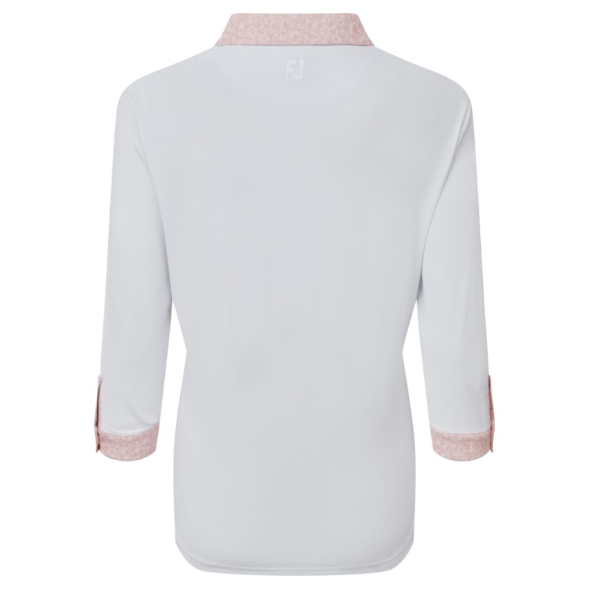 女性用 3-4 スリーブ ピケ プリントトリム フットジョイ ホワイト