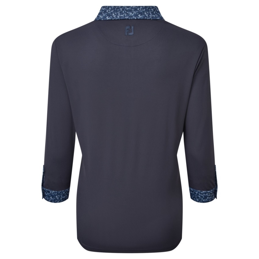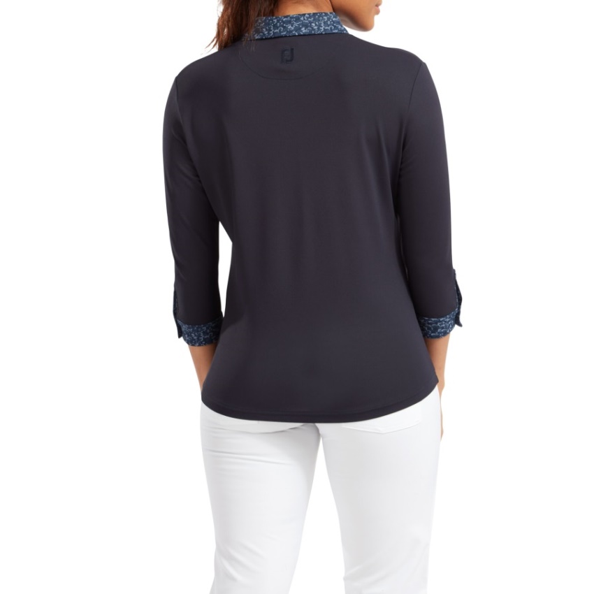 Footjoy ネイビー レディース 3-4 スリーブ ピケ プリント トリム